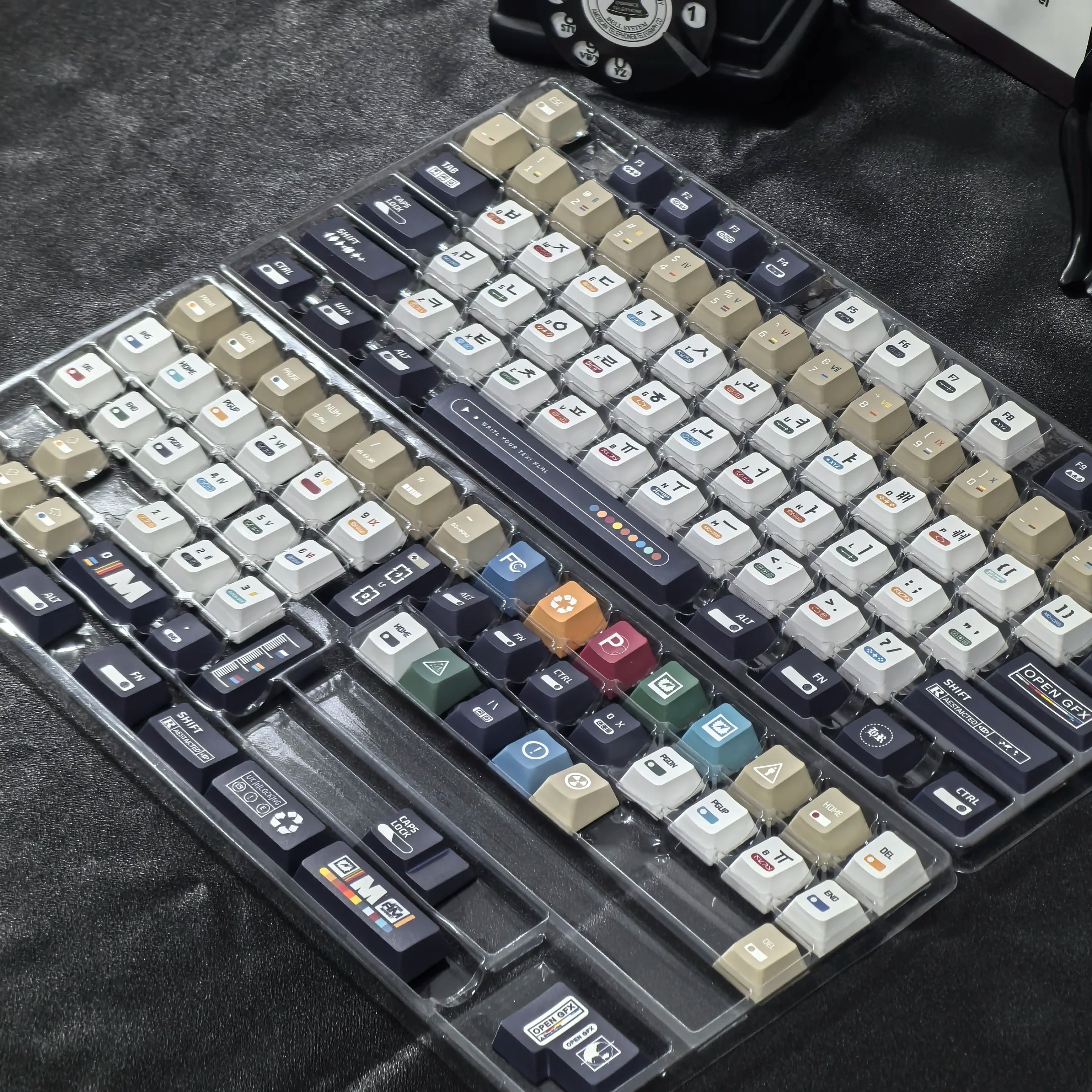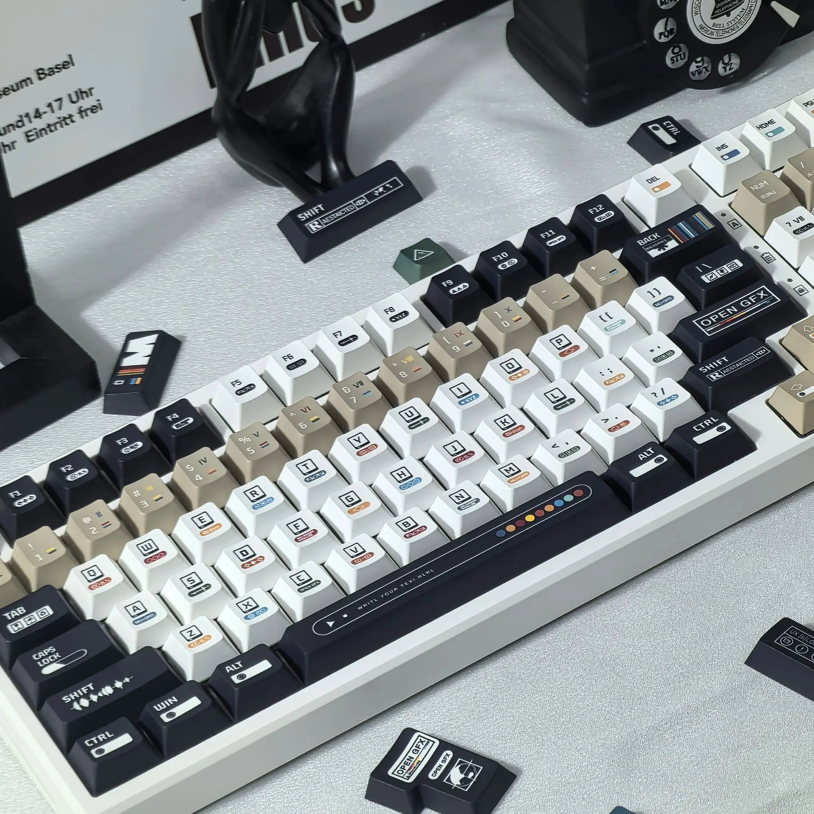 Korean Keycaps Maximalism Theme Keycap 135Keys Cherry Pbt Russian English Retro Keycap Black White Design  “L ”Shape Enter Key